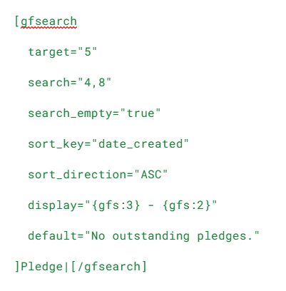 How it works: Match Status = Pledge. Then find entries where Receipt (Field 8) is blank. Use search_empty=”true” to intentionally target missing values. Sort oldest first for timely follow-up.