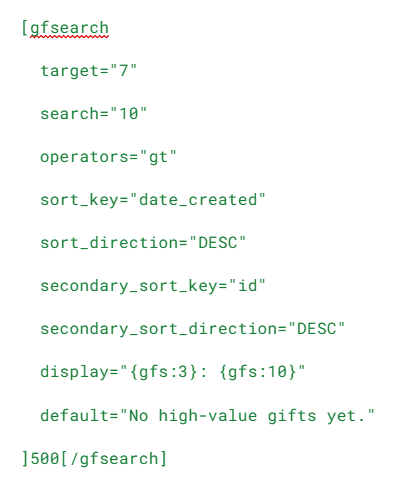 How it works: Use search=”10″ with operators=”gt” and put the threshold in the content (500). Sort newest first. Optional secondary sort stabilizes ties.