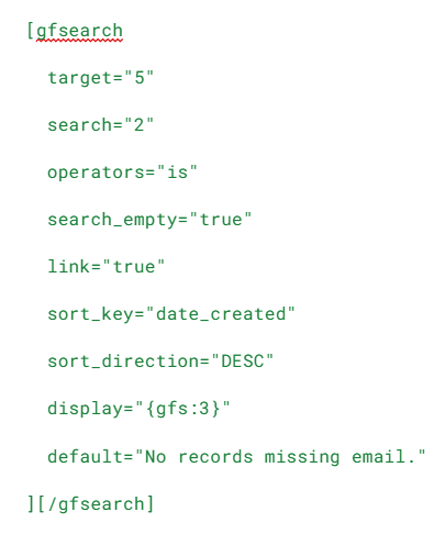 How it works: Find entries missing Email (Field 2). Turn on search_empty=”true”. Enable link=”true” so admins jump straight into the entry to fix it. Sort newest first to address recent issues fast.